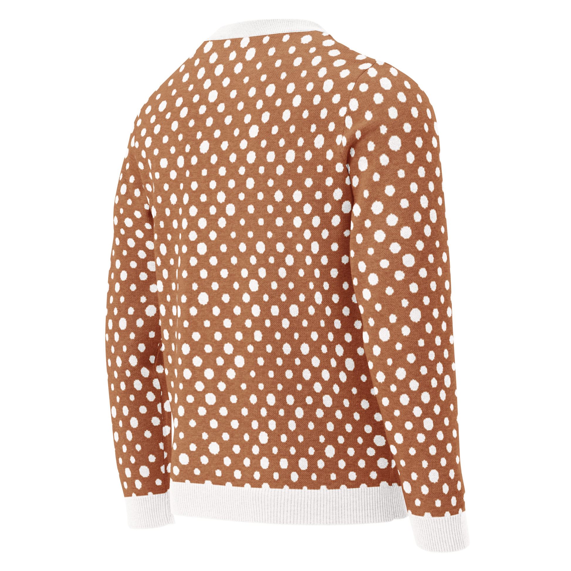 Knitted crew neck sweater - Deep Carmel and White Polka Dots