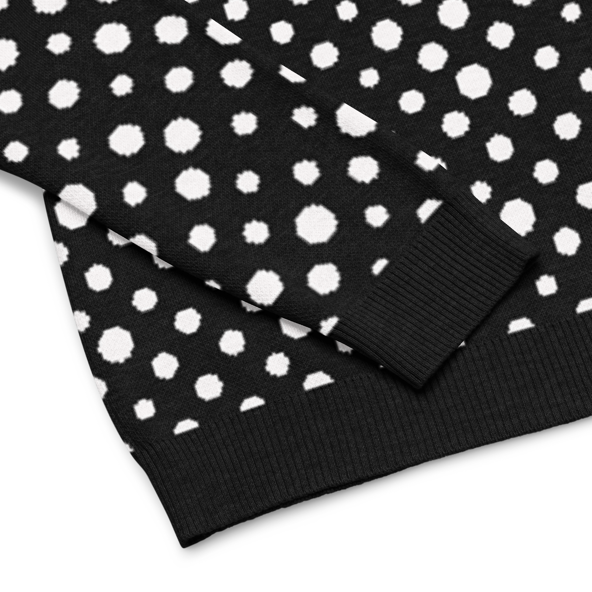 Knitted crew neck sweater - Polka Dot Black with White Dots
