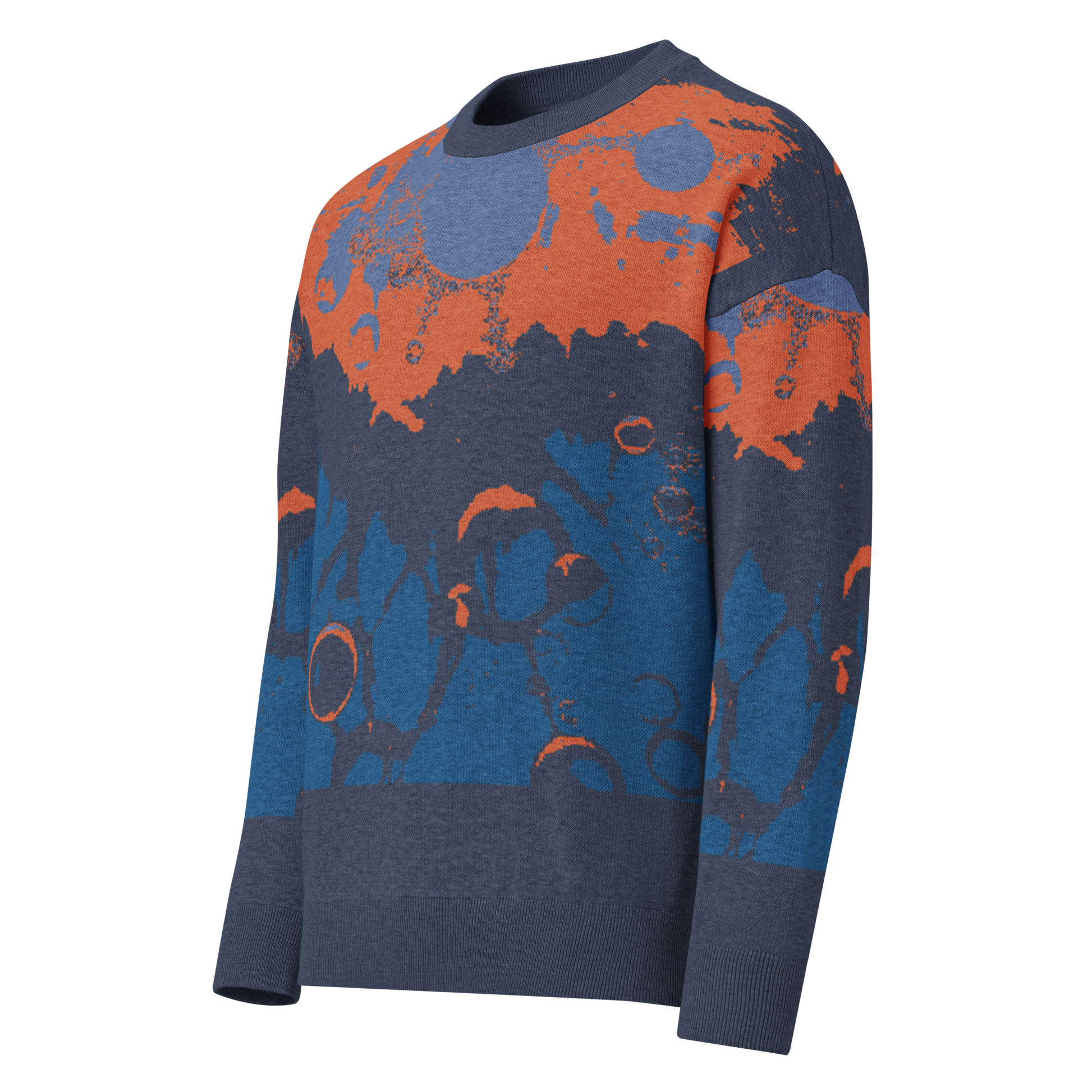 Relaxed fit knitted crew neck sweater - Abstract Blue and Burnt Orange