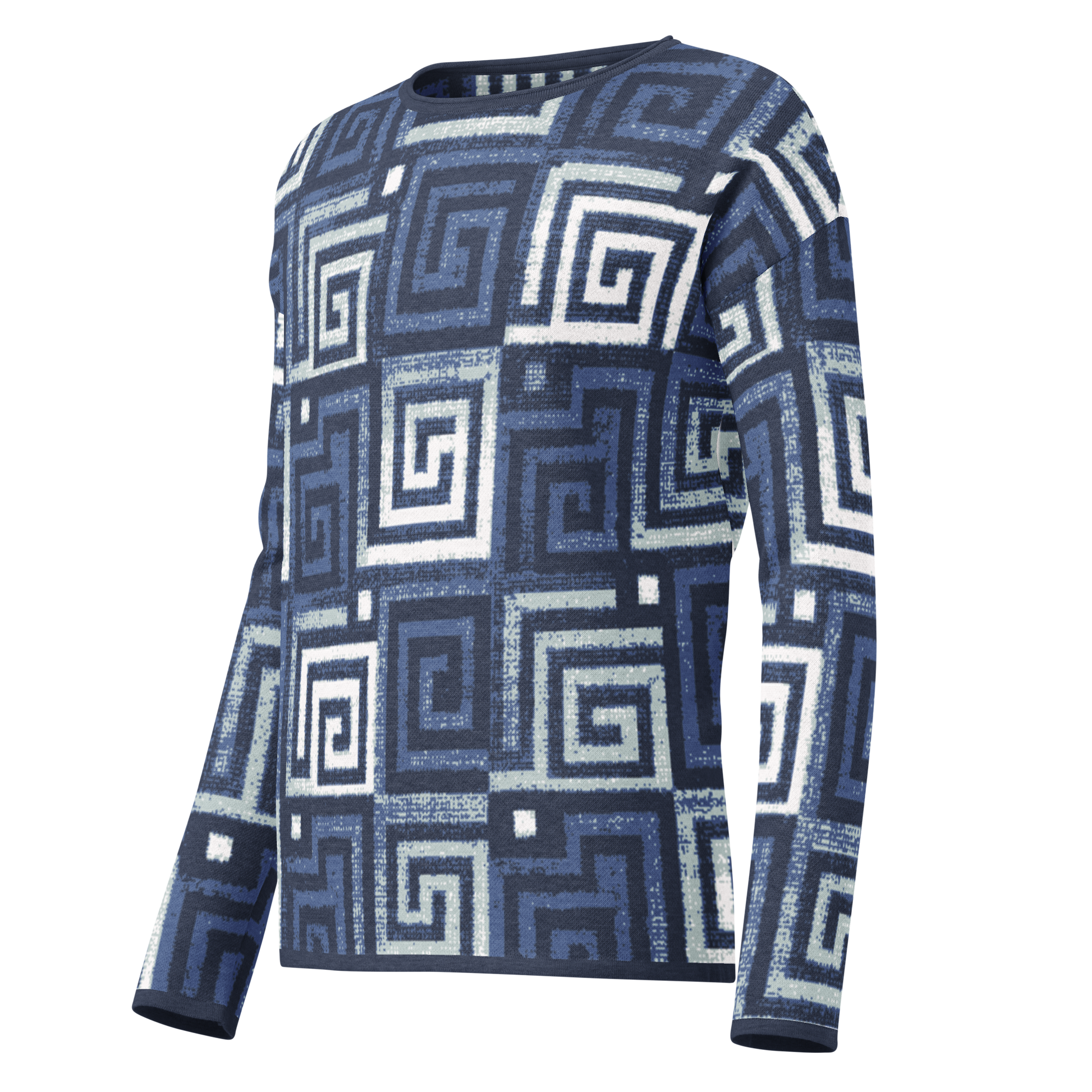Women’s straight bottom knitted sweater - Greek Key in Blue